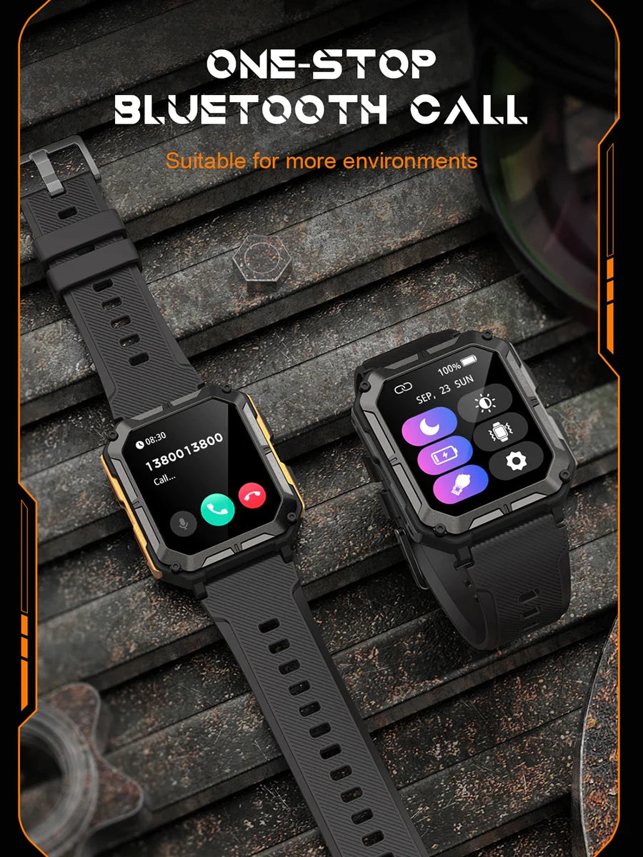 Crafted with a sleek titanium-style case and a durable stainless-steel strap, this smartwatch delivers both robust elegance and advanced functionality. Equipped with a crystal-clear touchscreen and physical “Power” and “Sport” buttons, it responds quickly whether you're tracking workouts or receiving notifications.